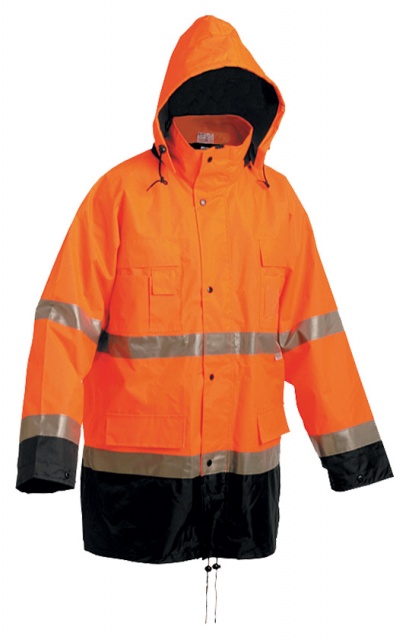Geaca lunga de iarna, impermeabila din poliester, gluga detasabila, benzi reflectorizante 3M, captuseala detasabila. Cusaturi termosudate. Culoare portocaliu + negru. Conforma cu normele EN 471, EN 343.